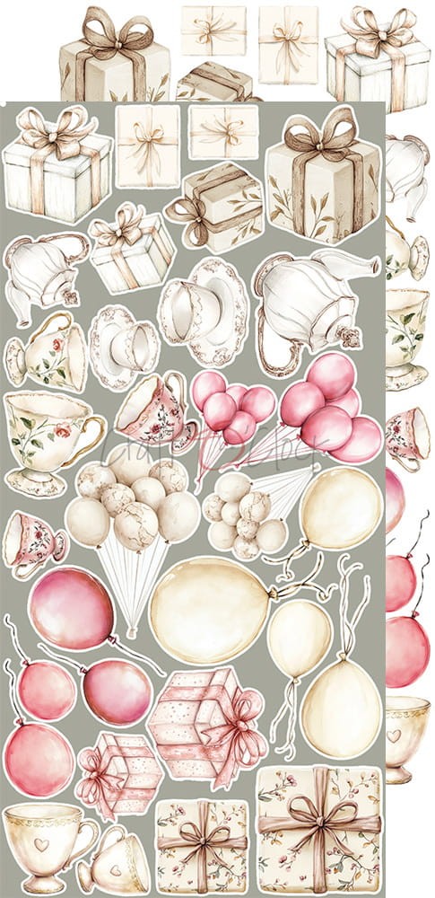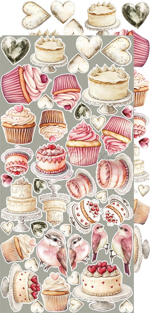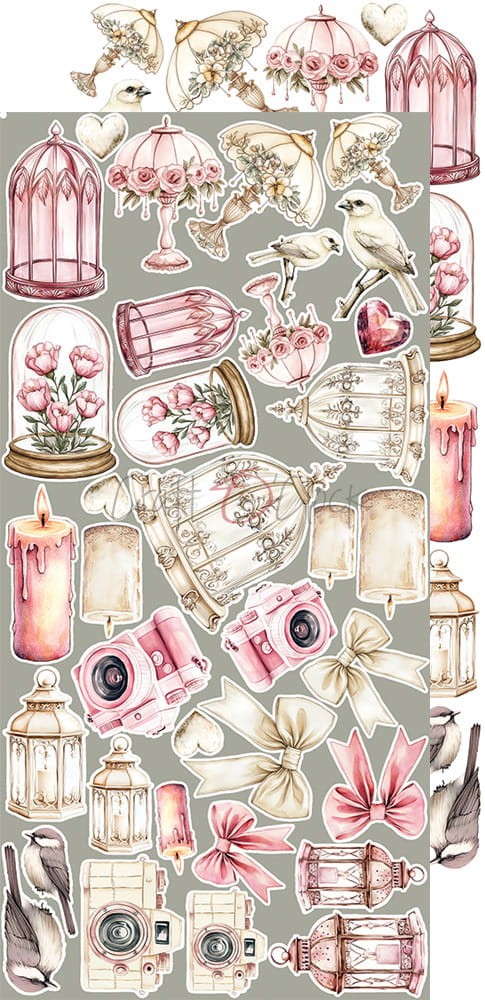 Zestaw 18 arkuszy wysokiej jakości dwustronnego papieru do scrapbookingu z dodatkami do samodzielnego wycięcia - 2x9 wzorów. Rozmiar każdego arkusza: 15,5x30,5cm. Gramatura papieru: 250g/m2. Plus dodatki/karty na odwrocie strony tytułowej.
