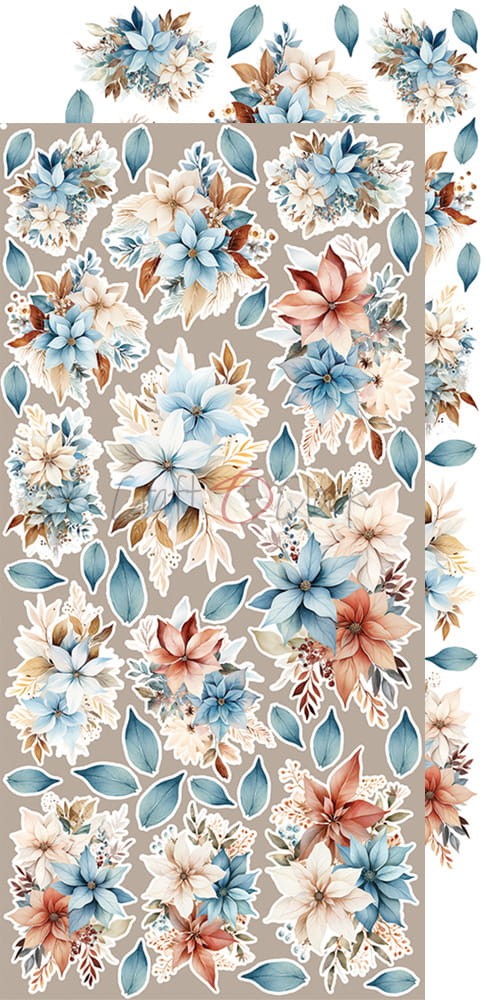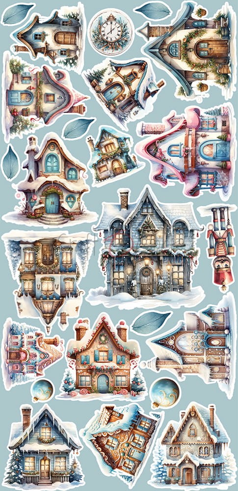 Zestaw 18 arkuszy wysokiej jakości dwustronnego papieru do scrapbookingu z dodatkami do samodzielnego wycięcia - 2x9 wzorów. Rozmiar każdego arkusza: 15,5x30,5cm. Gramatura papieru: 250g/m2. Plus dodatki/karty na odwrocie strony tytułowej.