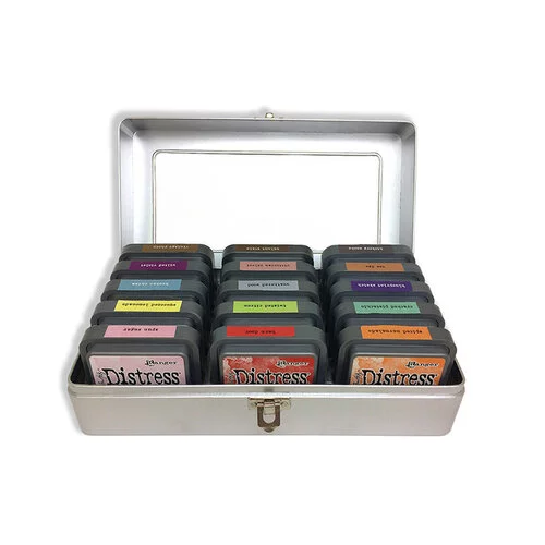 Distress Ink Pad Storage Tin to wysokiej jakości metalowy pojemnik do przechowywania dużych padów Distress.
