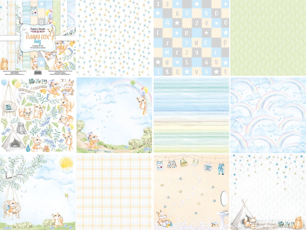 Fabrika Decoru Papier scrap 20x20 Funny Fox Boy Zestaw FDSP-02104