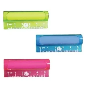 Gumka w plastikowej oprawce z linijką.