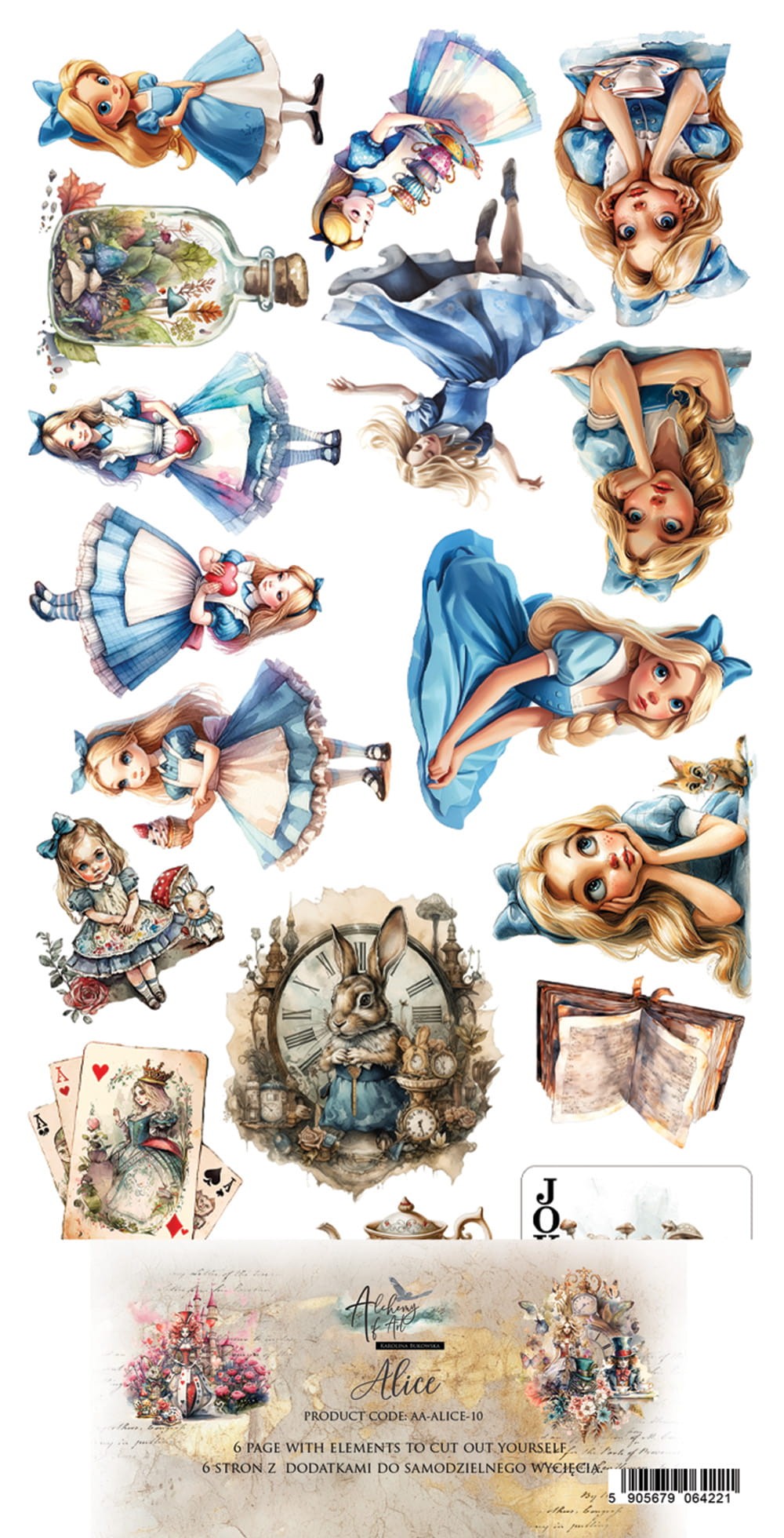 Papier scrap Alchemy of Art #36 Alice 10 el. (6 ark.) zestaw elementów do wycinania