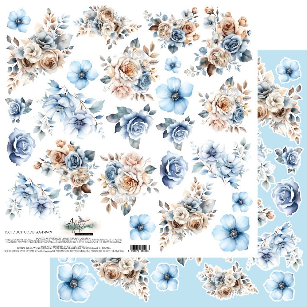 Papier scrap Alchemy of Art #50 In Shades of Blue 30x30 09 el. Flowers