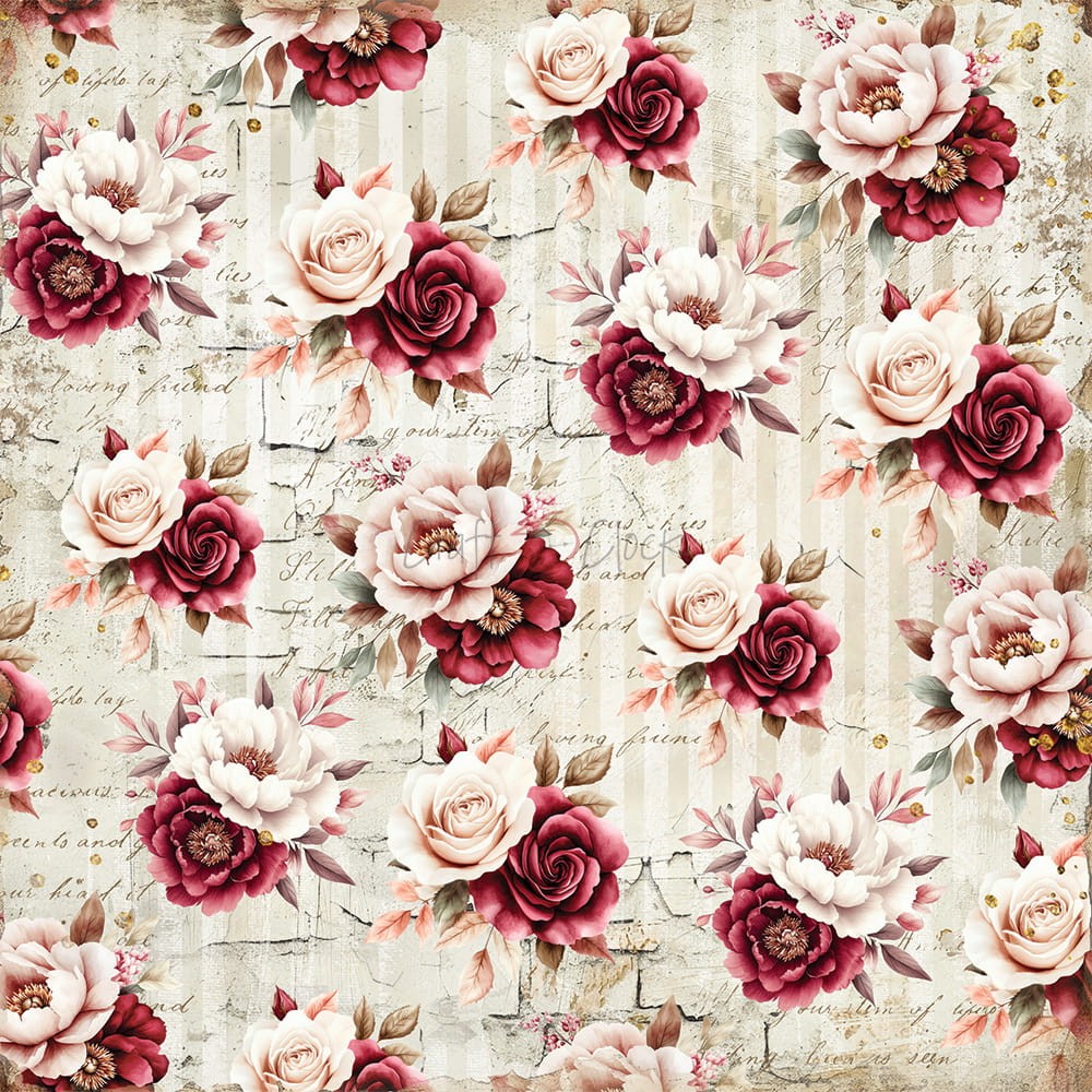 Zestaw 24 arkuszy wysokiej jakości dwustronnego papieru do scrapbookingu.
