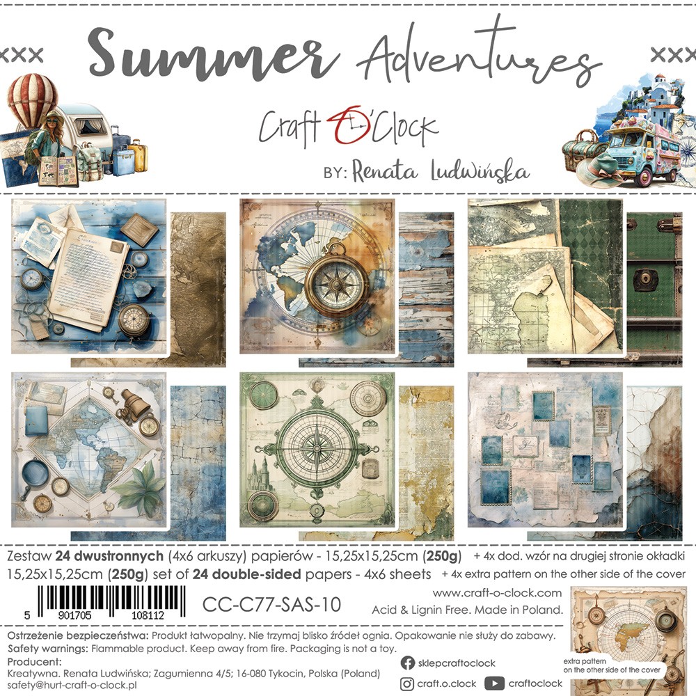 Papier scrap Craft O'Clock #77 Summer Adventures 15*15 Zestaw