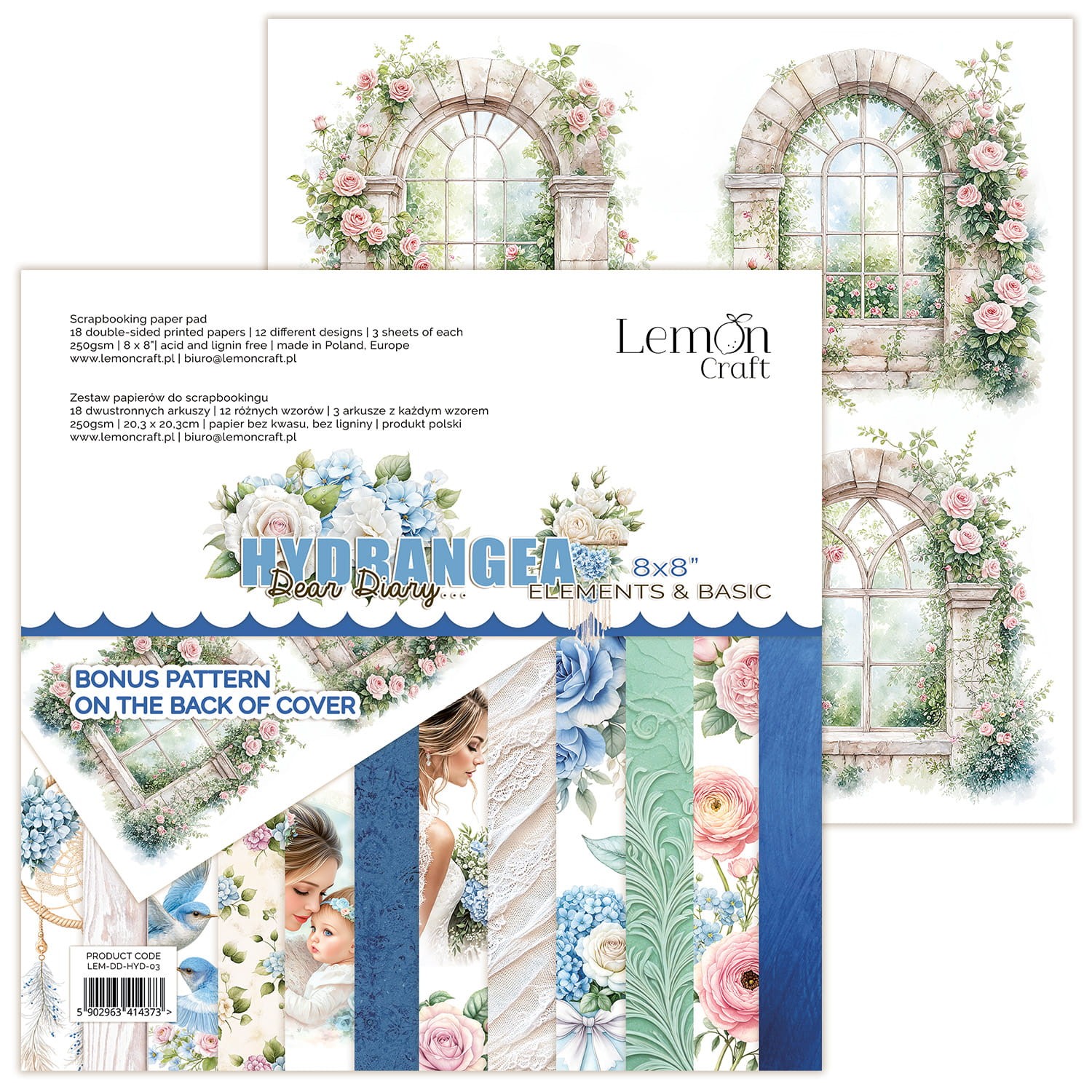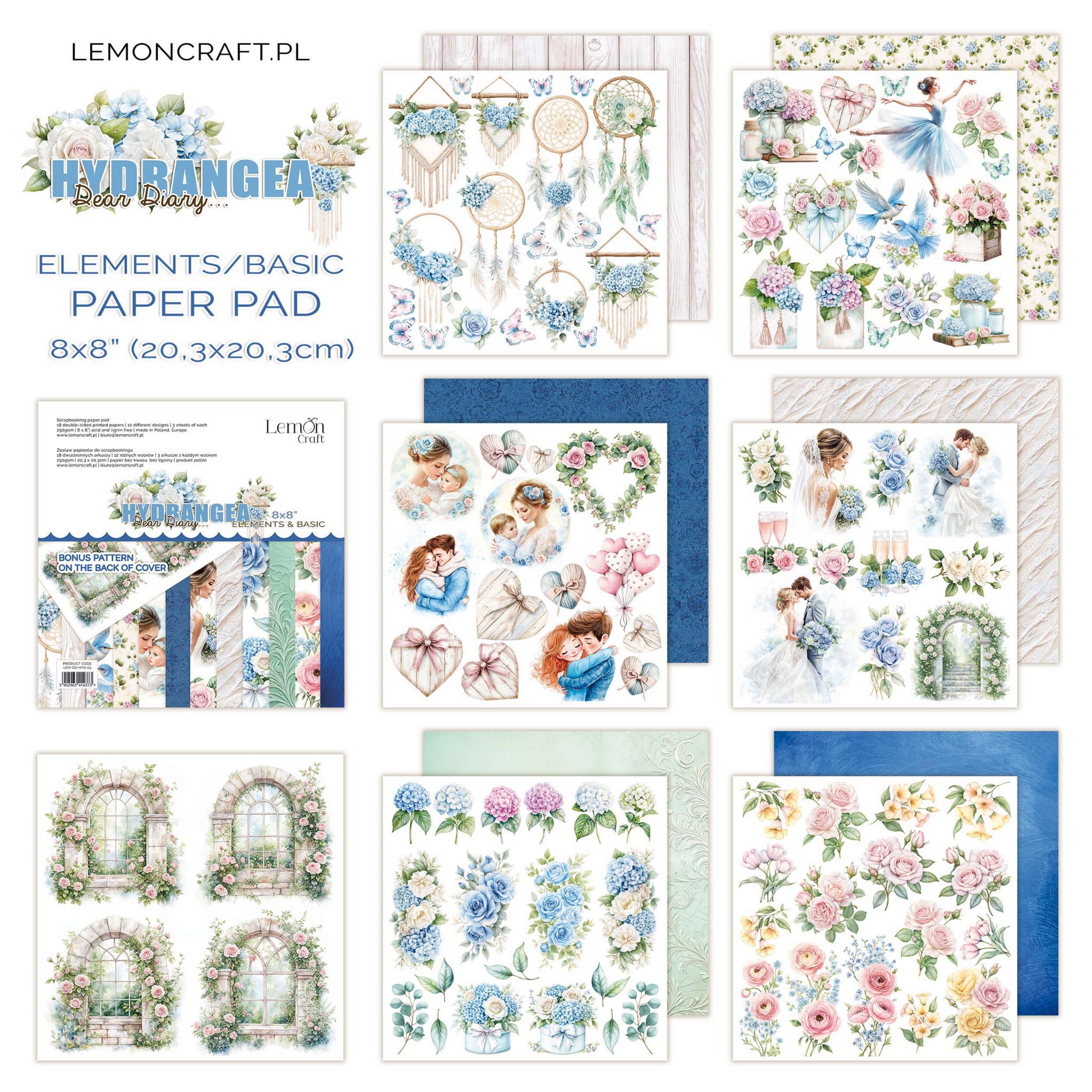 Papier scrap LemonCraft Dear Diary - Hydrangea 20,3x20,3 Elements & Basic