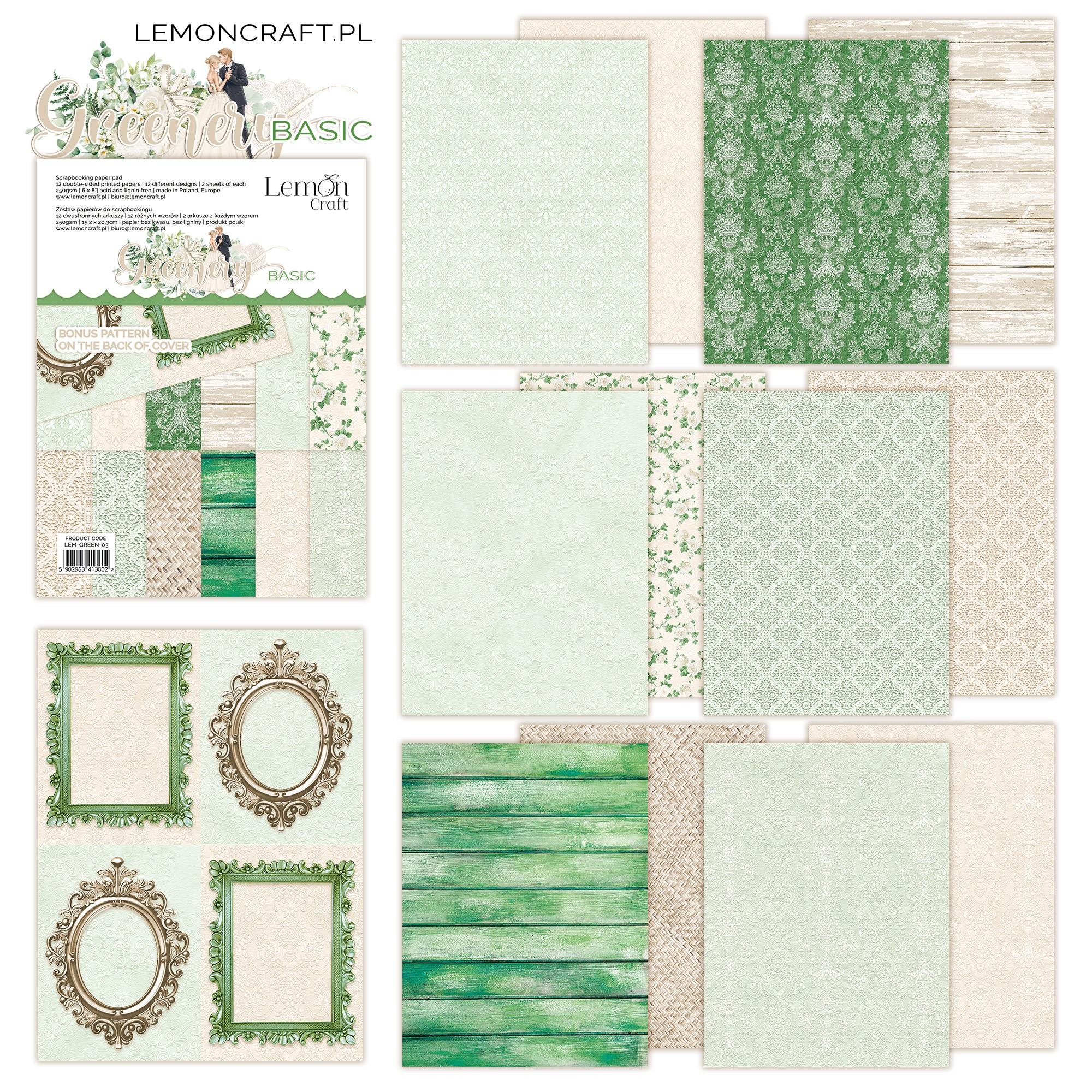Papier scrap LemonCraft Greenery 15,2x20,3 zestaw BASIC