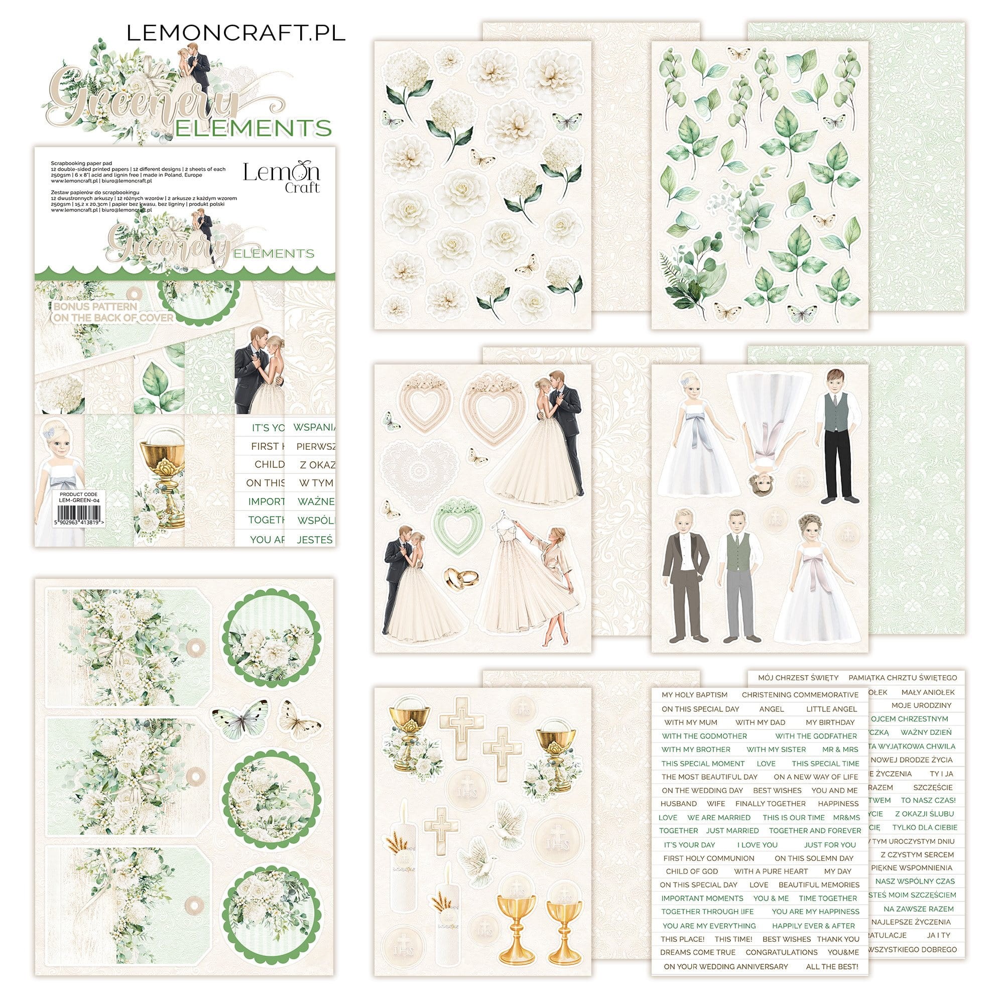 Papier scrap LemonCraft Greenery 15,2x20,3 zestaw ELEMENTS