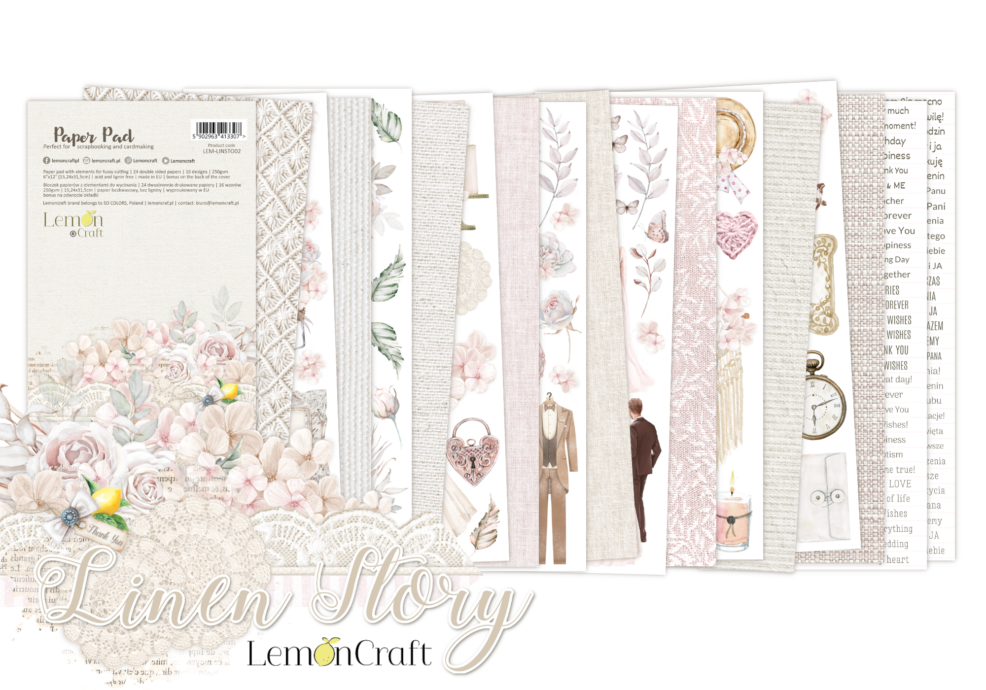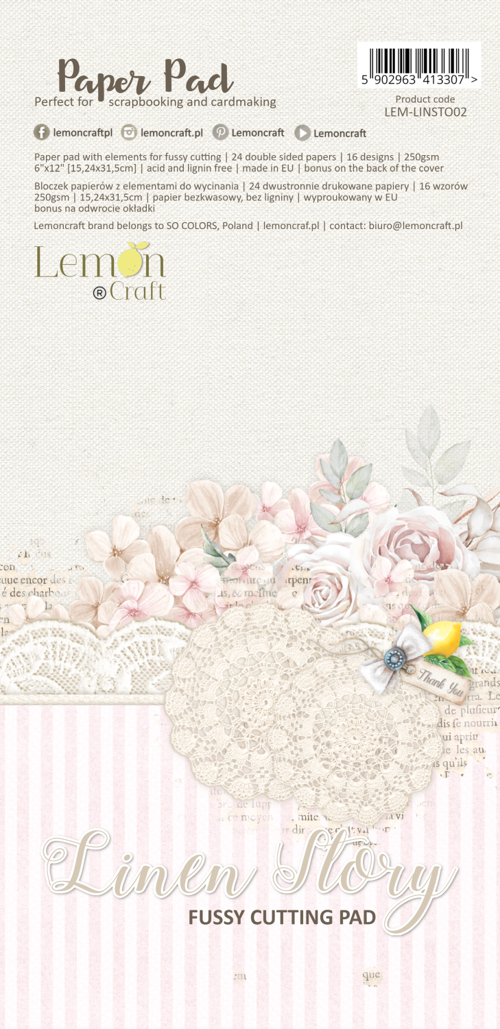Papier scrap LemonCraft Linen Story 15*30 bloczek