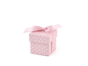 Pudełka do składania PD a'10szt w groszki RÓŻOWE Z KOKARDĄ