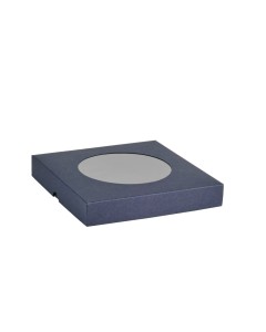 Pudełko Rzeczy z Papieru z okienkiem "O" wysokie kwadrat 15x15x3,5 Granatowe