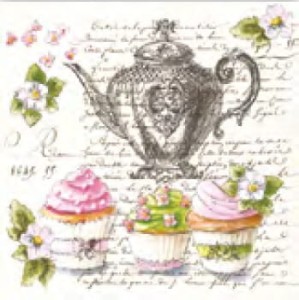 SERWETKA LUZ 33*33 MAKI SLOG041201 RETRO CUPCAKES AND TEAPOT