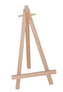 Miniaturowa sztaluga, którą można wykorzystać do ekspozycji kartek czy zdjęć.